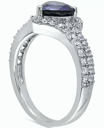 Absolute enchantment. A heart-shaped lab-created blue sapphire is caught up in a swirl of lab-created white sapphires in this sparkling silver ring.