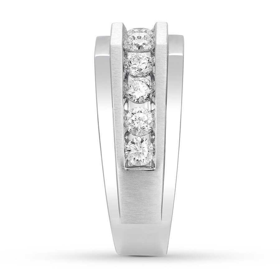 A distinguished way to commemorate your love, this handsome men's wedding band shines with round diamonds totaling 1 carat in weight. The dimensional band is crafted of 10K white gold and features brushed and polished finishes. From the Now & Forever? Collection.